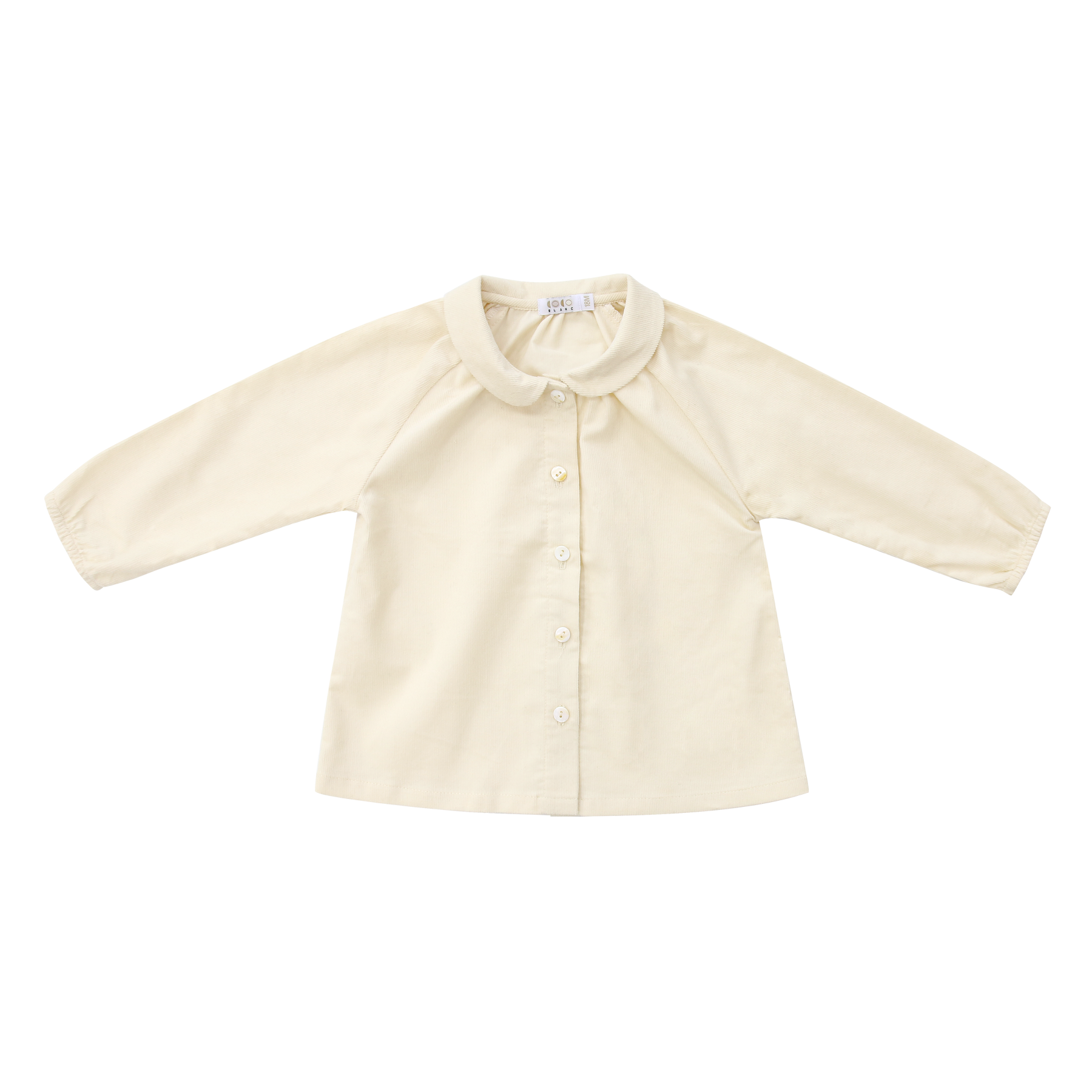 Everyone can use a touch of winter softness. Our cream button down shirt with its corduroy fabric and rounded collar pairs seamlessly with our line of bottoms this season.