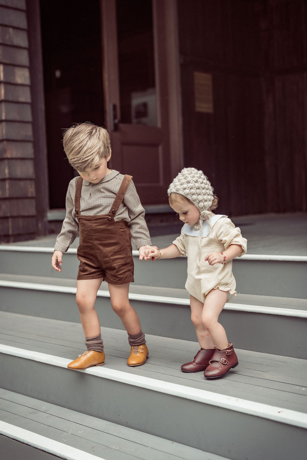 Is your little boy in need of some class? This formal shirt will do the trick with its classic houndstooth pattern, Peter Pan collar and front pocket. Buttons at the back.